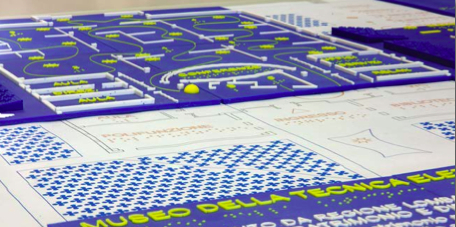 Un primo intervento per aumentare la fruibilità del Museo della Tecnica Elettrica è rappresentato dalla progettazione e realizzazione di una mappa tattile di dimensioni 60×50 cm che rappresenta l’edificio in scala 1:200.