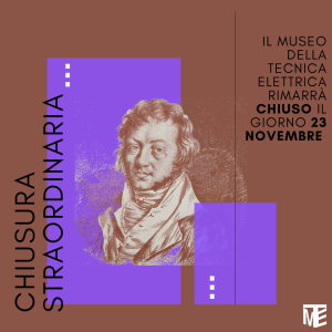 Informiamo che Giovedì 23 novembre il Museo della Tecnica Elettrica rimarrà chiuso al pubblico. Si ricorda che il Museo sarà chiuso anche venerdì fino a data da destinarsi. Ci scusiamo per il disagio.
